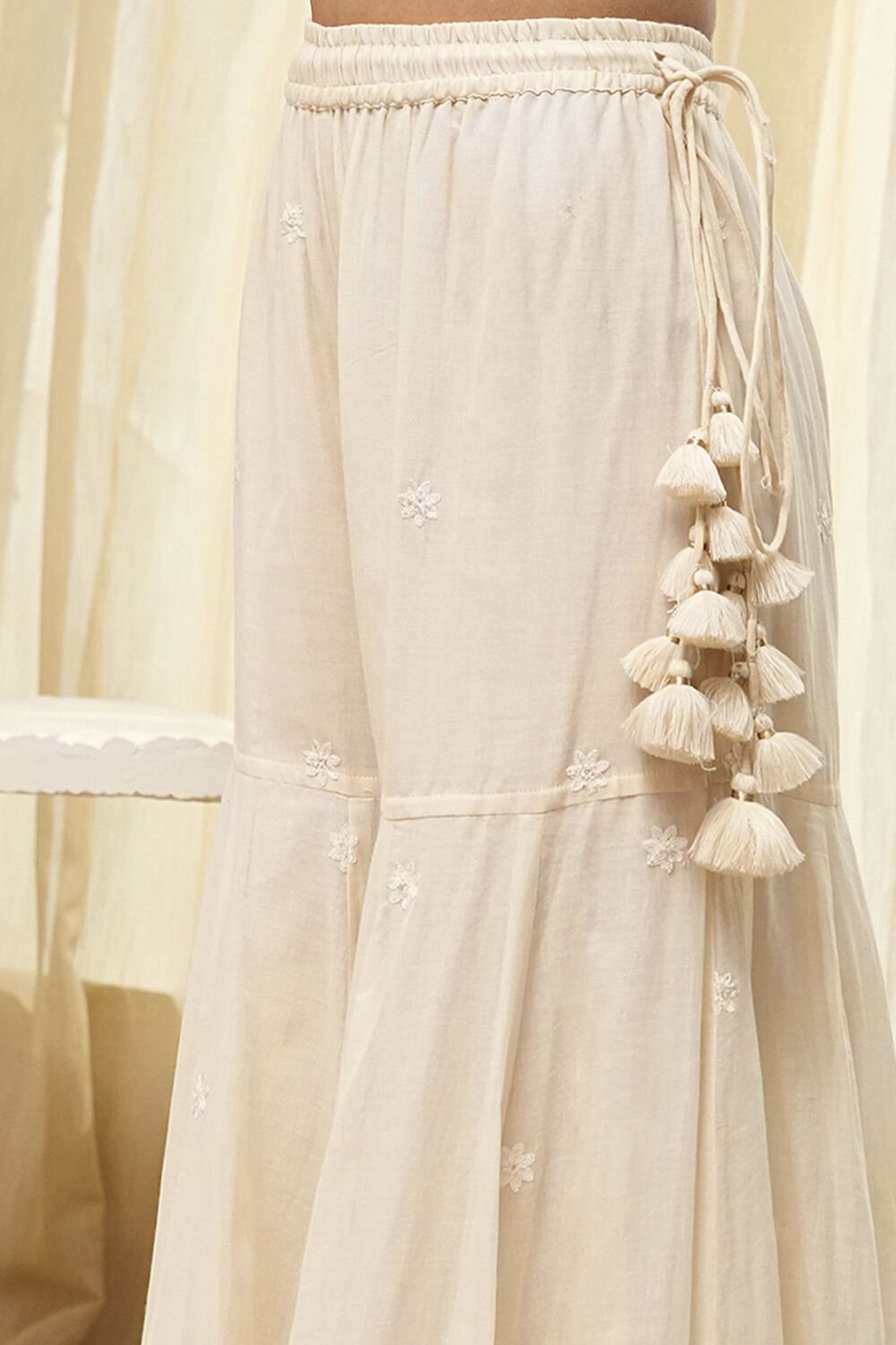 Beige Cotton Blend Straight Kurta Set | Biba India